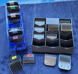 more convenient. In my opinion, a good starter (corded) clipper is the Andis MGB2 Easyclip. When I first wrote this site there was a set including combs and carry case on Ebay for $139.99 (free postage); Sept 2022 they were $165 + $8 postage. The MGB2 takes the same clip-on A5 blades as the AGCPro, the Wahl and Opal cordless; which is handy if you decide to upgrade later. However the combs in the set listed below are not the same and won't fit the upgrade clippers. The combs in the MGB2 set are pretty crap actually so if you can find just the clippers cheaper elsewhere I would buy that and get combs that will fit AGC2 and KM2 because, weirdly, they will also fit the MGB2s. For a short movie showing how to put combs on your clippers please click HERE I bought my first pair MGB2s off of FB Marketplace for $50 (only been used once). These were my first set of clippers and if I only had one dog I probably would still be using them ... ok, no I wouldn't, but I think I've already mentioned I'm a doggy-tragic? Link to ebay listing for MGB2 Clippers is/was: