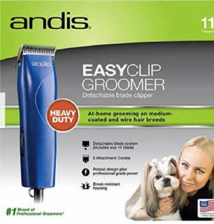 The Gripsoft Comb (pictured above right) has rotating teeth so when you come to a mat, the teeth rotate in the handle and roll through it rather that being pulled through causing far less doggy-stress. The handle is hard plastic, so I'm not sure how long it will last (mine has been going well over a year with no sign of wear) - see Brushes & Combs page for any updates. At about AU$16 + postage from Mars Grooming Products, it's another bargain in my opinion. Other combs are discussed in full on the brushes and combs page. Corded ClippersAndis MGB2 Easyclip. October 2022 the cheapest I could find them new was $165 + $8 postage. The MGB2 takes the same clip-on A5 size blades as the AGCPro, the Wahl and Opal cordless; which is handy if you decide to upgrade later. If you can find them second-hand then remember to ask all the pertinent questions I listed on the clippers page where other corded clippers are reviewed as well.