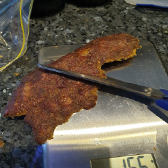 Top left pic is what the meat mix looks like after a little over 2 hours in the dehydrator. The top is now dry