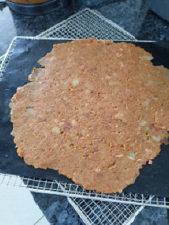 mixture is spread to your liking, slide the silicon sheet (or baking paper) onto
