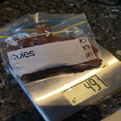 Mum weighs our treats into small zip lock